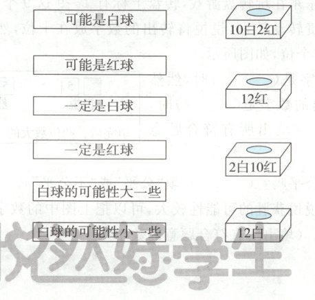 二、从下面四个箱子里分别摸出一个球,结果怎样? 连一连。