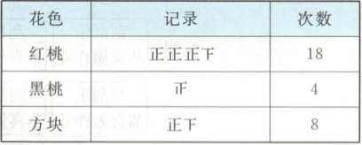 小朋友们一起玩抽扑克牌游戏(扑克牌反面完全相同)。扑克牌有三种花色:红桃、黑桃和方块。每次抽出一张,记录花色后放回重洗,一共抽了 30 次。抽出各种花色的次数如下表: