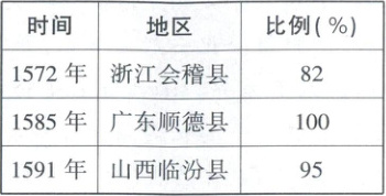 5. 下表是明中后期部分地区以银征收的田赋部分占全部财政收入的比例情况。这反映了当时(