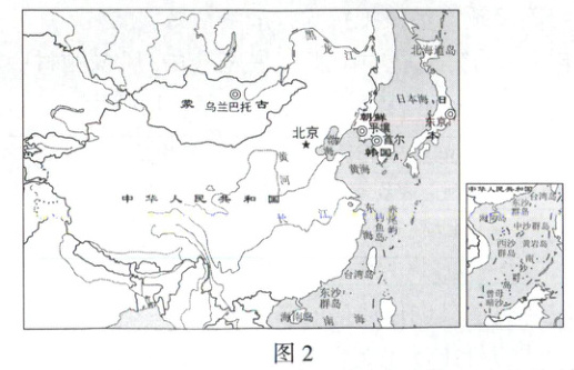 (1) 根据材料并结合所学,在图 2 中用斜线“//////”阴影标注东北亚海上风险热点区域并说明理由。(6 分)