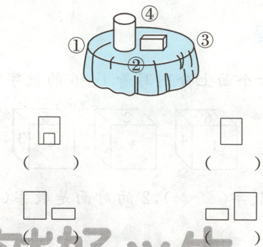 2. 如果笑笑站在①号位置,她看到的是什么?画“○”。如果笑笑站在④号位置,她看到的是什么?画“△”。