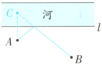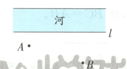 5. 如图,$ A $ 为草地,$ B $ 为帐篷。牧马人在 $ A $ 处牧马,先牵马到河边饮水,然后再回到帐篷。请你帮他确定这一活动的最短路线。