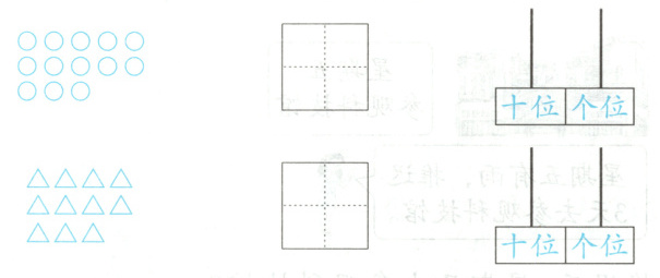 1. 先圈出10个,再写出总数,并在计数器上表示出来。