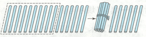 数出 10 根小棒,捆成一捆,数起来既方便又清楚。这些小棒有(