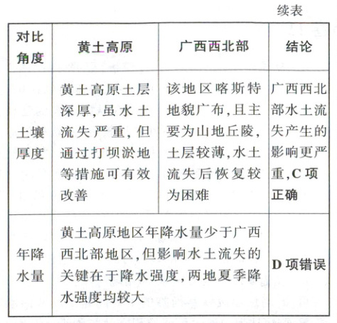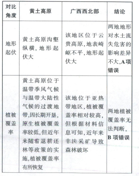 本题实质是分析黄土高原与广西西北部的自然环境差异。