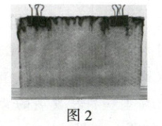 2. 12 个小时之后,同学们发现洗脸巾顶部蓝色加深,且有大量白色晶体析出,如图 2。