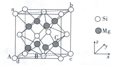 Si位于晶胞的顶点和面心,一个晶胞中含有Si的个数为8×1/8 + 6×1/2 = 4,Mg位于体内,一个晶胞中含有Mg的个数为8,则该晶胞的化学式为Mg₂Si。晶胞中与Mg原子距离最近且相等的Si原子有4个,故Mg原子的配位数为4。