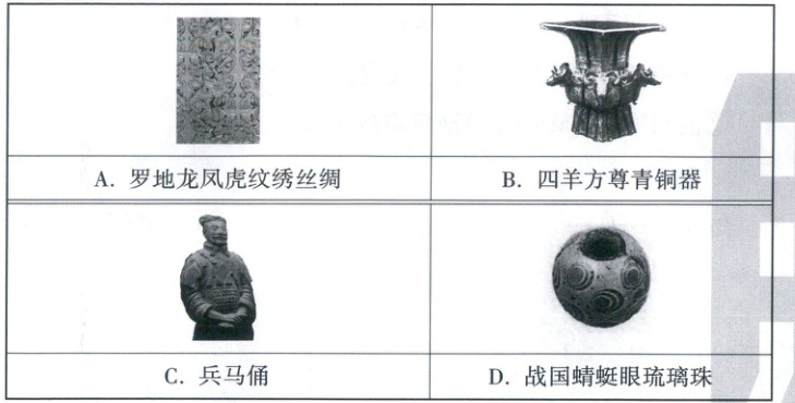 1. 我国有着悠久的历史和灿烂的文化。下列文物的主要成分属于金属材料的是(