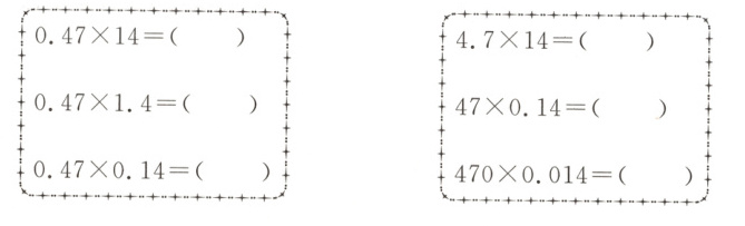 5. 计算6.5 × 0.7时,先把6.5扩大到原来的(\ )倍,再把0.7扩大到原来的(\ )倍,然后把这两个整数相乘的积缩小到原来的(\ )。