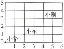4. 课间操时,小华、小军、小刚三人的位置如图所示,小华对小刚说:“就你、我、小军我们三人的位置而言,如果我的位置用数对$(0,0)$表示,小军的位置用数对$(2,1)$表示,那么你的位置可以用数对(