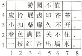 )的位置。(3)诗中三个“不”字的位置用数对表示分别为(