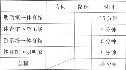 (1) 根据给出的路线图,填出明明从家去游乐场和回来时所走的方向和路程。