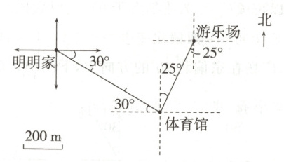 (1)东偏南$30^{\circ}$ 600m 北偏东$25^{\circ}$ 400m 南偏西$25^{\circ}$
