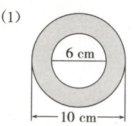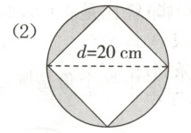 $1.(1)3.14×8×2÷2+3.14×8=50.24(cm) (2)3.14×9×2×\frac{1}{4}+9×2=32.13(cm) 2.(1)10÷2=5(cm) 6÷2=3(cm) 3.14×(5² - 3²)=50.24(cm²) (2)20÷2=10(cm) 3.14×10² - 20×10÷2×2=114(cm²) (3)6×6 - 3.14×6²×\frac{1}{4}=7.74(dm²)$