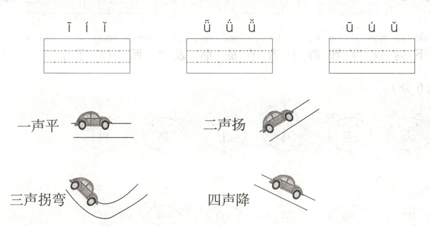 九、读儿歌,找出每组中缺少的声调,并写下来。