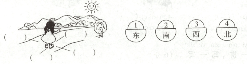 七、我会根据日出来辨别方向。(填序号)(4分)