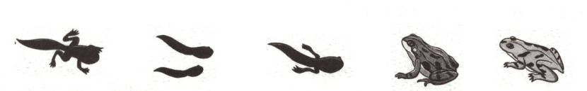 2. 蝌蚪是怎样长成青蛙的?在每幅图下面标上序号。(5分)