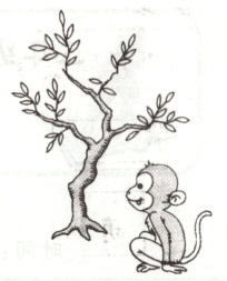 一天,猴子去摘桃子。它看见小桃树上一个桃子也没有,很后悔。它想:要是我帮小桃树挡风、捉虫子,今天,我就可以吃到