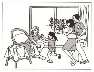 周末的早上,阳光照进房间。我和爸爸妈妈提着一篮水果和一束鲜花,来到奶奶家。我跑到奶奶面前,拉着她的手说:“奶奶,我们来看您啦!”奶奶笑着摸了摸我的头,眼睛里都是开心的光。爸爸妈妈把水果放在桌上,妈妈还把鲜花插进了花瓶里,房间一下子变得更漂亮了。我们要陪奶奶一起度过快乐的一天。