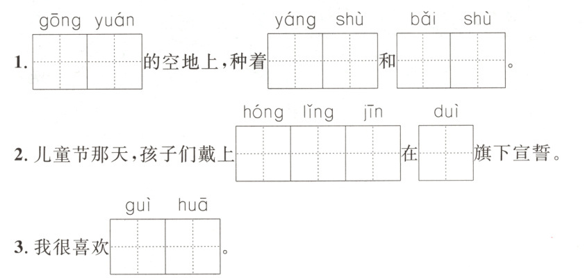 1.公园 杨树 柏树 2.红领巾 队 3.桂花