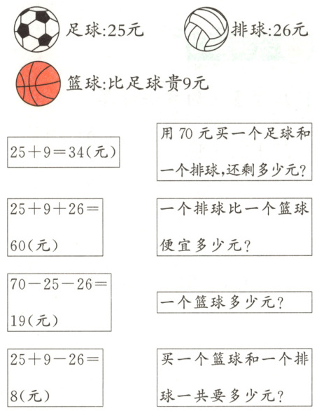 (2) 豆豆用 100 元买了其中 3 件不同的商品,还剩 30 多元,豆豆买的可能是什么商品?