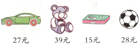 9. 奇奇用 90 元买了下面两件不同的商品,还剩下 30 多元,奇奇买的可能是哪两件商品?