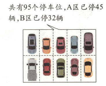 7. 【生活情境】超市停车场分为 A、B 两个区域,停车情况如下图,请问停车场还剩多少个空的停车位?