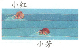 3. 小芳和小红进行百米游泳比赛。小芳离终点还有 10 米,小红比小芳落后 5 米,小红游了多少米?列式是()。