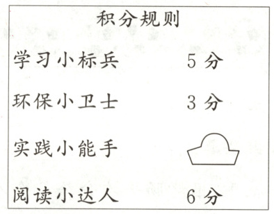 15. 【生活情境】下面是二年级一班的班级积分规则,每获得一次荣誉称号,就可以攒一次积分。
