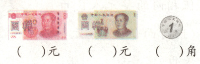 (1)第五套人民币的硬币有三种面额,分别是()、()和()。
