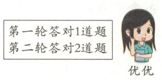 方法点拨:优优第一轮答对 1 道题,第二轮答对 2 道题,一共答对 3 道题,想口诀三四(十二),所以一共得了 4×3=12(分)。