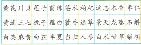 6. 【传统文化】中医是我国宝贵的传统文化遗产之一,是优秀传统文化的重要组成部分。“百杏林”中药店需要进购一批中药材,药材种类如下表所示,需要进购()种药材。解决这个问题可以列出乘法算式()或(),利用口诀()来计算。