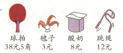 (2)小明要买一个乒乓球拍,他该怎么付钱?圈一圈。