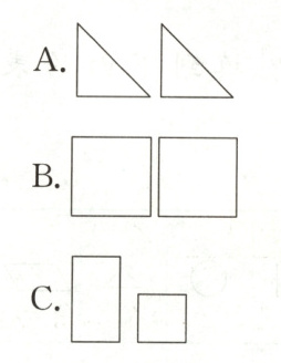 2. 下列三组图形中,()组可以不重叠地拼成正方形。