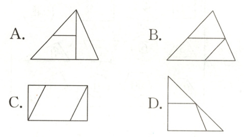 5.B 方法点拨:A和D是用1个梯形和2个三角形拼成了一个新的三角形;B是用1个平行四边形和2个三角形拼成了一个新的三角形;C是用1个平行四边形和2个三角形拼成了一个长方形。