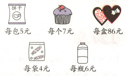 (3)妈妈给了乐乐50元钱,乐乐买了两种不同的商品,圈一圈,他可能买了什么?还剩下多少钱?