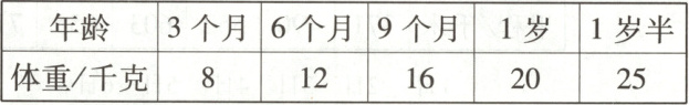 (2)$3$个月到$1$岁半一共增长了多少千克?(4分)