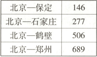 4. 下面是北京到郑州沿线车站的火车里程表(里程:千米)。