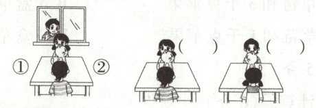 (1)男孩从窗外看到的是哪幅图?在括号里画“◯”。