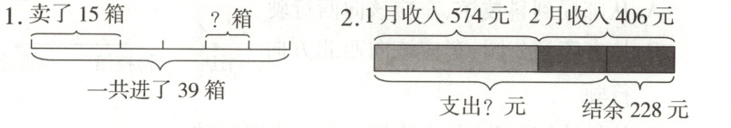 1.(39 - 15)÷4 = 6(箱) 2.574 + 406 - 228 = 752(元)