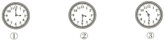 (1) 上图中第①个钟面上的时刻是 $ 3:00 $,分针与时针所形成的夹角是(