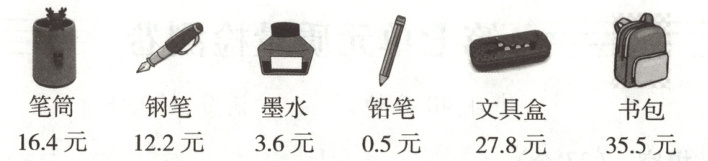 (1)霏霏想买一支钢笔、一个笔筒和一瓶墨水,40 元够吗?(3 分)