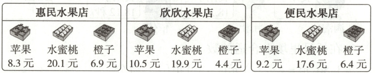 )水果店的橙子价格最便宜,比最贵的橙子价格少(2.5