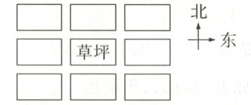 (2) 图书馆在草坪的东北方向,草坪在礼堂的东北方向。(4 分)