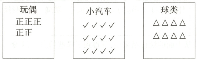 3. 老师统计了三(1)班同学最喜欢的玩具情况,每人只选择一种,结果如下。