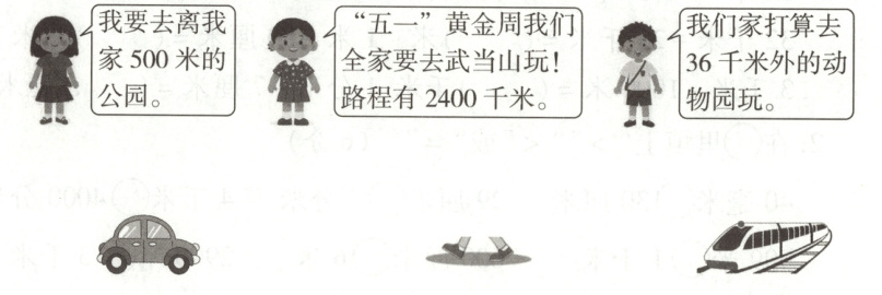 4. 帮小朋友们选择合适的出行方式,连一连。(9 分)