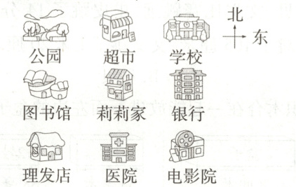 )的西北方向。(3)莉莉从公园出发去电影院,她先向(