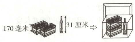 3. 妈妈让小红帽带着蛋糕和葡萄酒去看望外婆,把 2 盒蛋糕和 1 瓶葡萄酒按图中的方式放进深 4 分米的盒子中,盒子可以正常盖上盖子吗?(5 分)