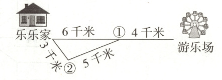 2. 从乐乐家到游乐场走哪条路线近?比另一条路近多少?(5 分)