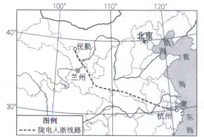 (2025 北京西城期末)陇电入浙工程是国家“十四五”电力发展规划重点项目,建成投运后,预计每年可向浙江输送电量超 360 亿千瓦·时,其中新能源电量占比超 50%。下图为陇电入浙线路示意图。据此完成 5~7 题。